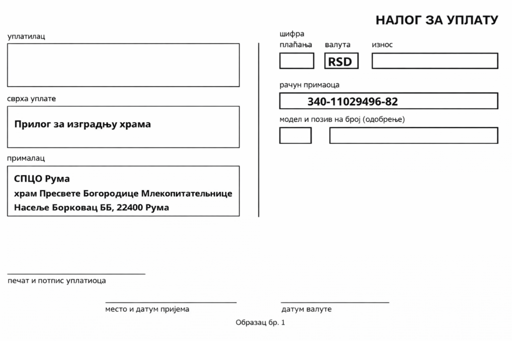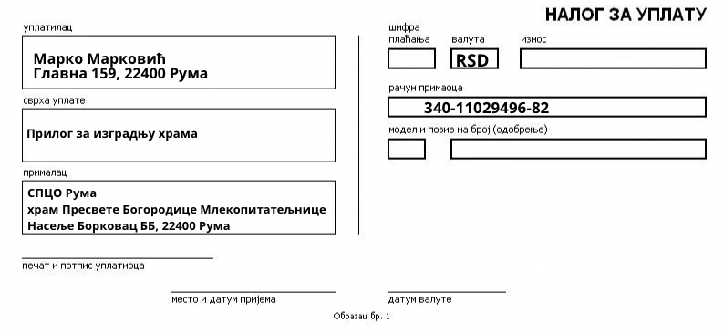 Уколико желите можете дати добровољни прилог за изградњу храма